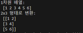 print("1차원 배열:", arr1) # 출력: [1 2 3 4]