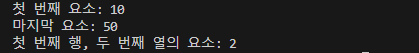 print("첫 번째 행, 두 번째 열의 요소:", array_2d[0, 1])